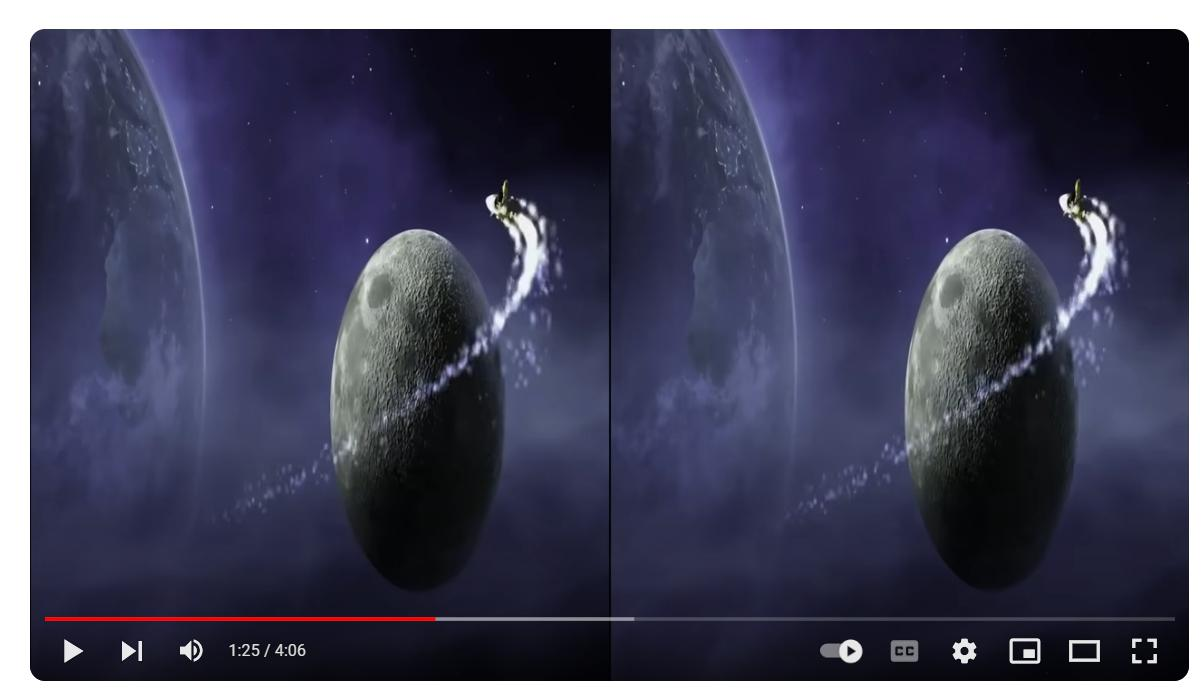 When playing video sources like the one shown below, the video source displays side-by-side on the left and right sides.
