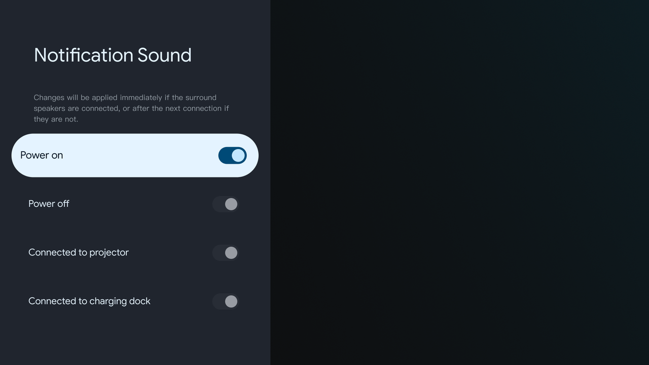 Added an option to disable surround speaker notification sounds for a cleaner and more immersive viewing experience